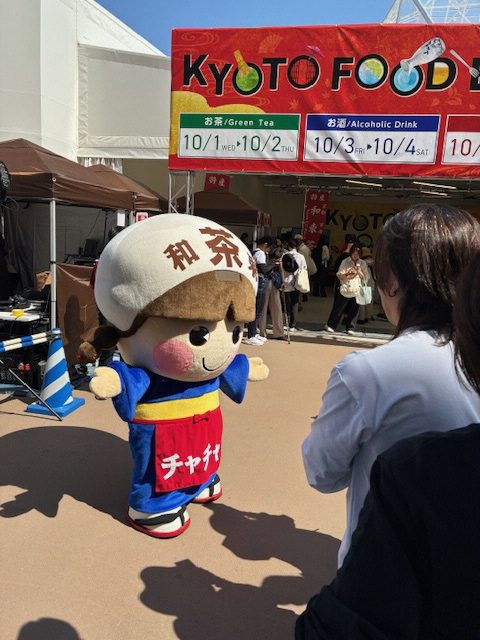 京都府のマスコットキャラクターの「まゆまろ」と和束町の「茶茶ちゃん」が皆様をお迎えします。