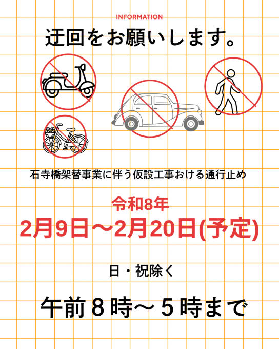 通行止め期間:令和8年2月9日 ~ 2月20日(予定)
